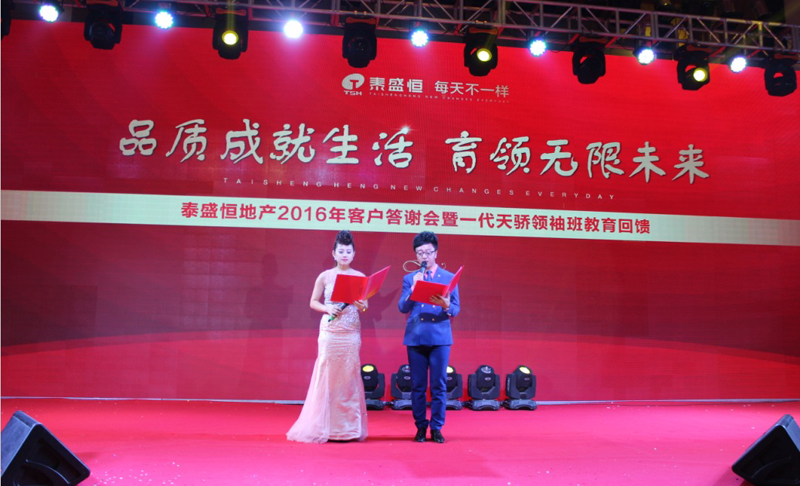 2016年1月18日下午,魯商鉑爾曼酒店三樓多功能廳群星閃耀,人氣爆棚。泰盛恒地產(chǎn)2016年客戶答謝會(huì)暨一代天驕領(lǐng)袖班教育回饋盛大舉行,現(xiàn)場(chǎng)公益教育講座、精彩節(jié)目表演、超級(jí)大獎(jiǎng)抽取分別震撼亮相……現(xiàn)場(chǎng)座無虛席,熱鬧非凡,近兩千名業(yè)主們共同度過了一個(gè)精彩紛呈的下午。