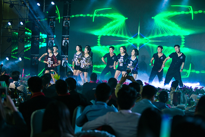 晚上七點,馬董、孫董共同上臺開啟了本場晚會的祝酒儀式,祝酒儀式使用象征著財富、吉祥的“發(fā)財樹”,預示著公司必將在未來的發(fā)展中財源廣進、再攀新高。除了有精彩的節(jié)目,更有激動人心的抽獎環(huán)節(jié)。晚會安排了六輪抽獎活動,以及微信“幸運觀眾抽獎”活動,博得現(xiàn)場觀眾的陣陣喝彩。