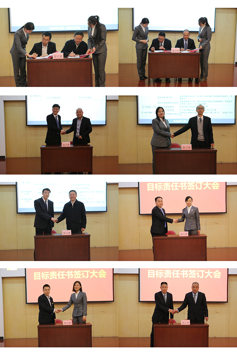 隨后,由公司領導班子成員代表公司和各部門負責人簽訂年度目標責任書,其次由黃總代表地產公司與各分子公司簽訂年度目標責任書,最后各分子公司負責人與其各項目負責人簽訂年度目標責任書,整個簽訂儀式在莊嚴而緊張的氣氛中進行。