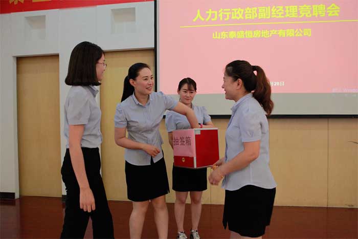 為健全公司管理機構,不斷優(yōu)化人力資源配置,6月28日,泰盛恒地產組織召開人力行政部副經理競聘會。會議由工會主席趙慶芹主持,公司領導班子部分成員擔任評委,地產公司全體員工參加會議。